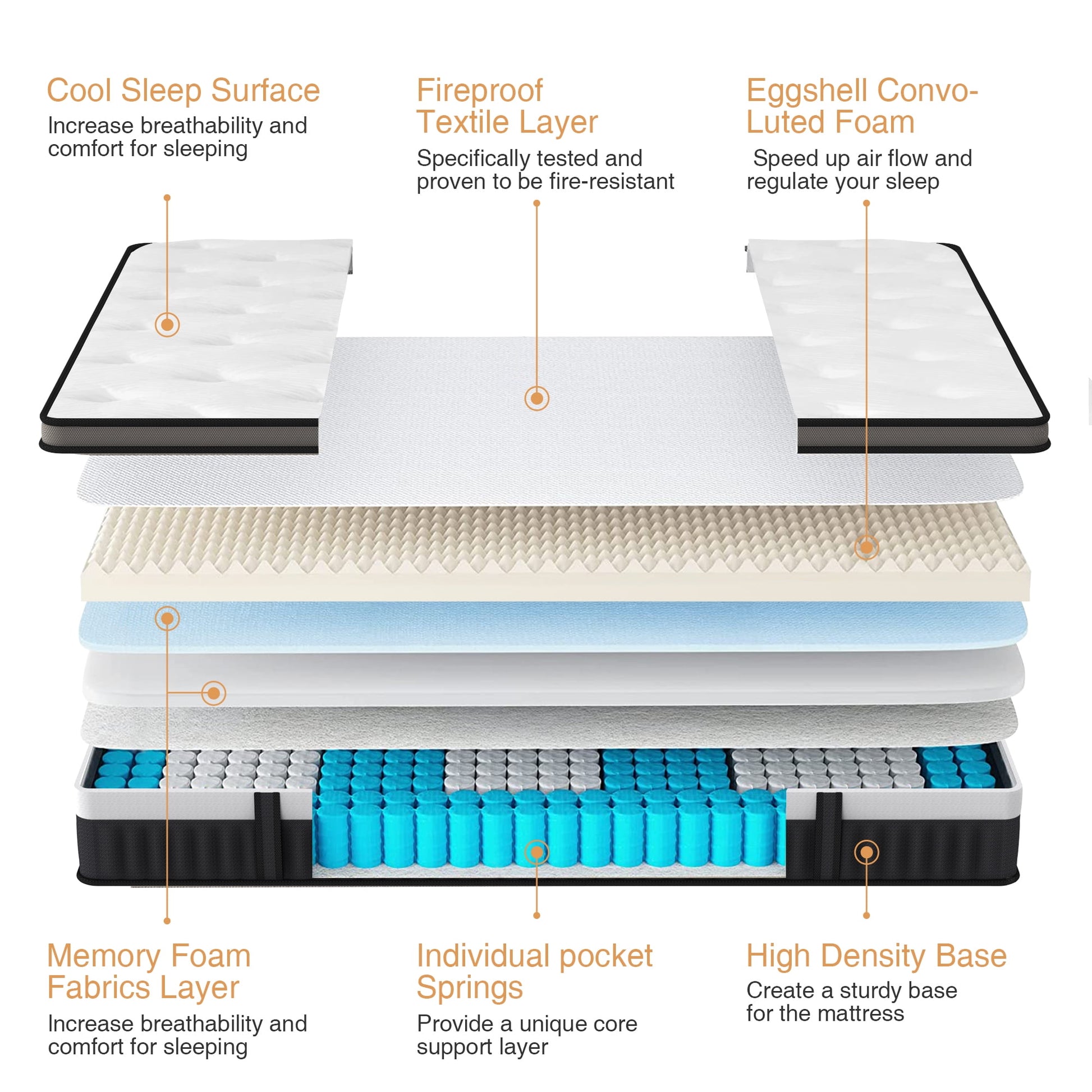 - Core Technology: Multi-layered foam infused with cooling memory gel