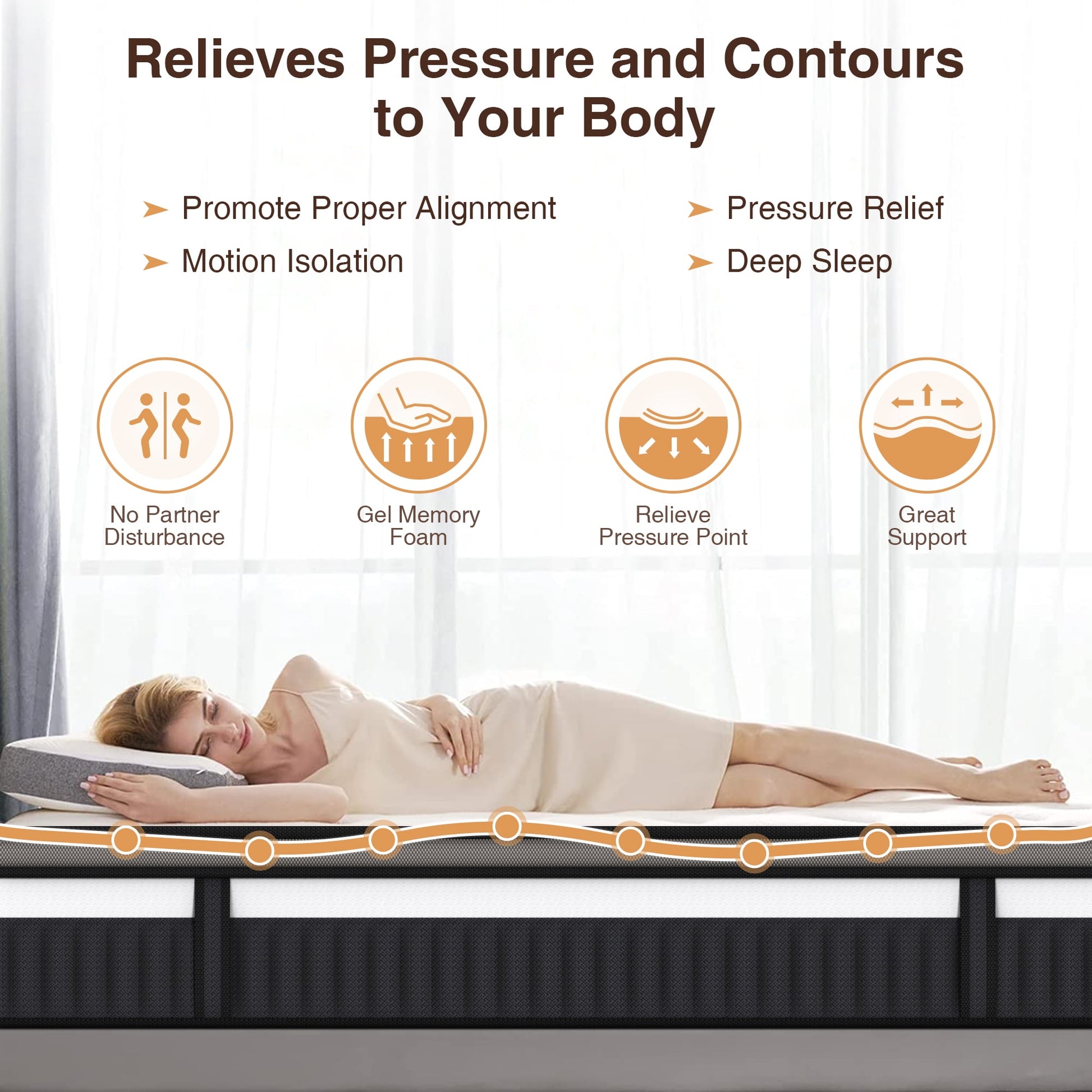 - Gel foam layer for targeted pressure relief and cooling comfort