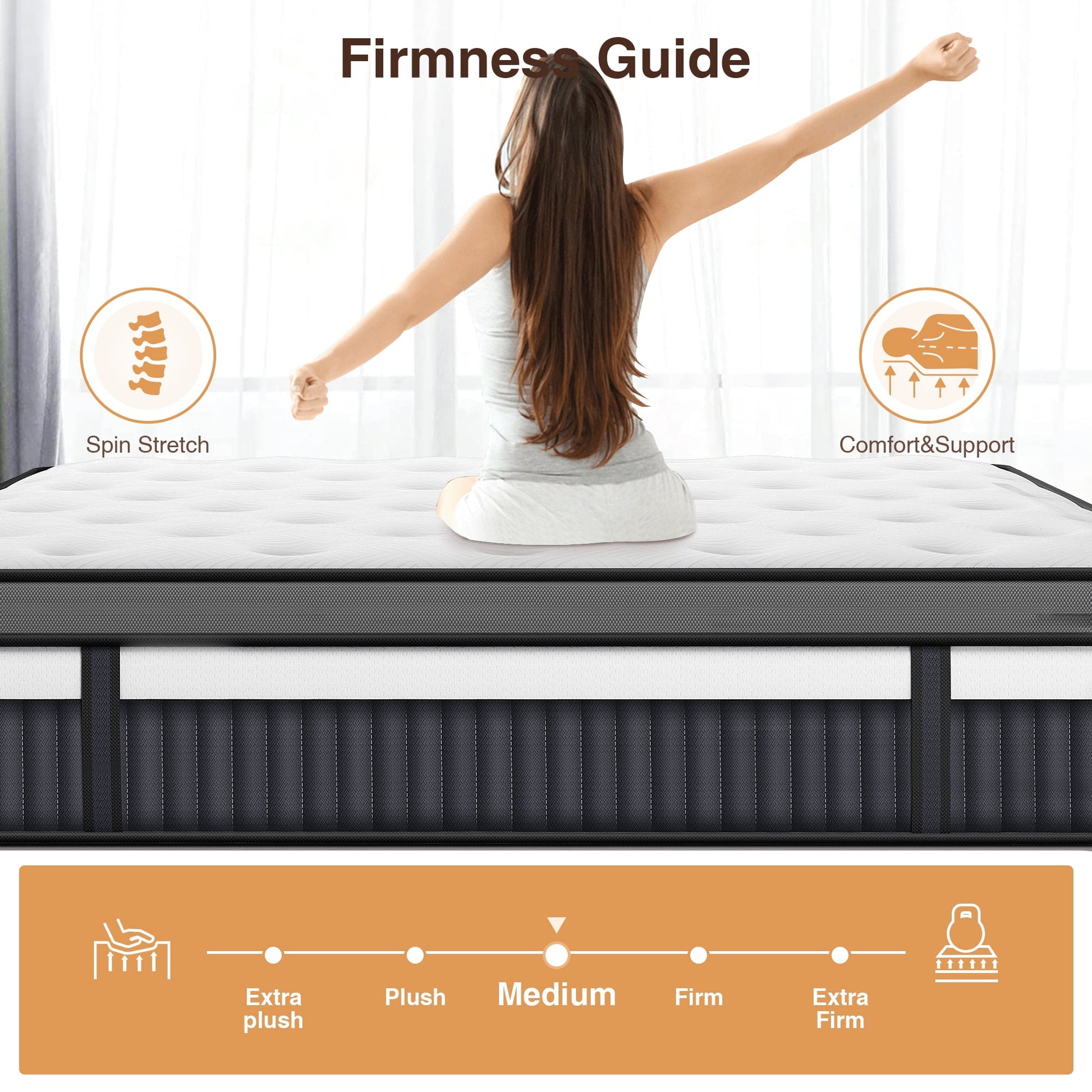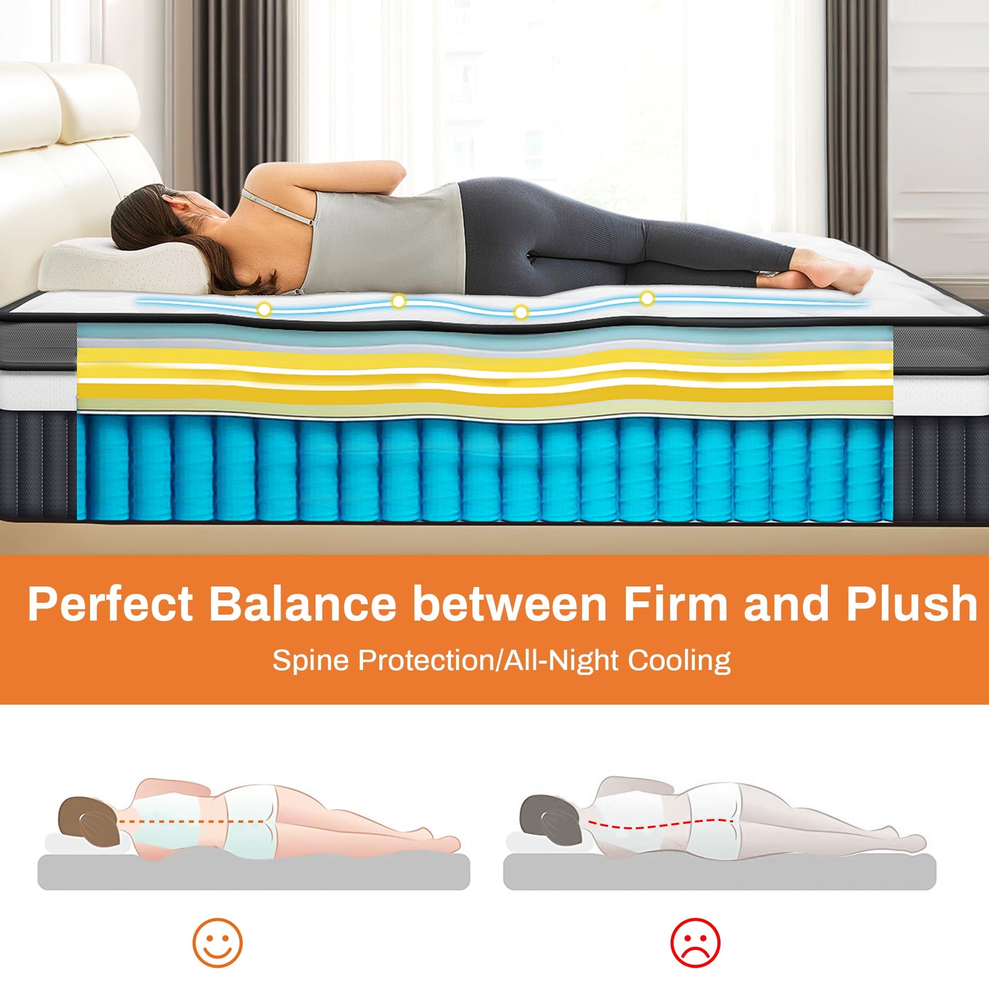 Quality materials and construction: The 14-inch king and queen hybrid innerspring mattress boasts a four-layer all-foam system for improved support and heat dissipation, ensuring ultimate comfort. The mattress cover is soft and washable for your convenience.