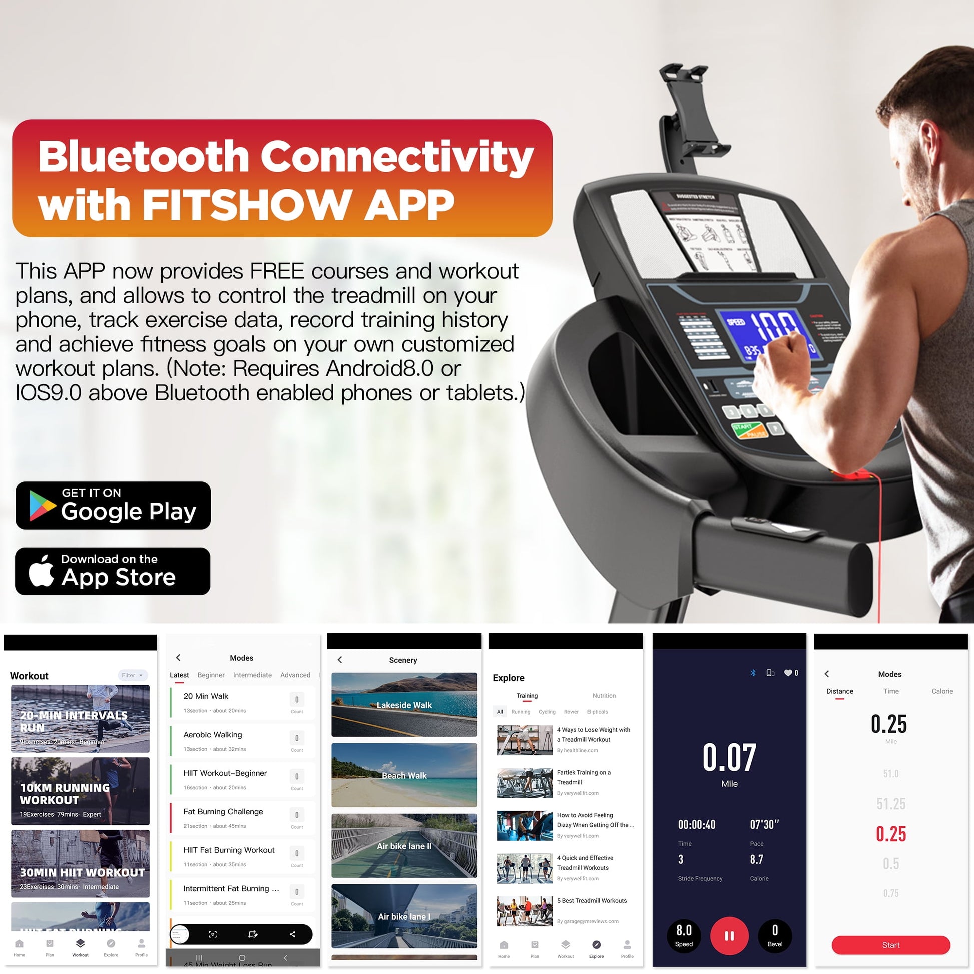 The Smart APP provides access to free courses and workout plans, helping you stay motivated and achieve your fitness goals. Whether you're using this foldable treadmill for walking, jogging, or running, the app offers tailored plans to suit your needs. In addition, the APP offers features such as training sessions, classes, virtual runs, scenic videos, map route running, and customized goals, transforming monotonous workouts into a more engaging and structured experience.
