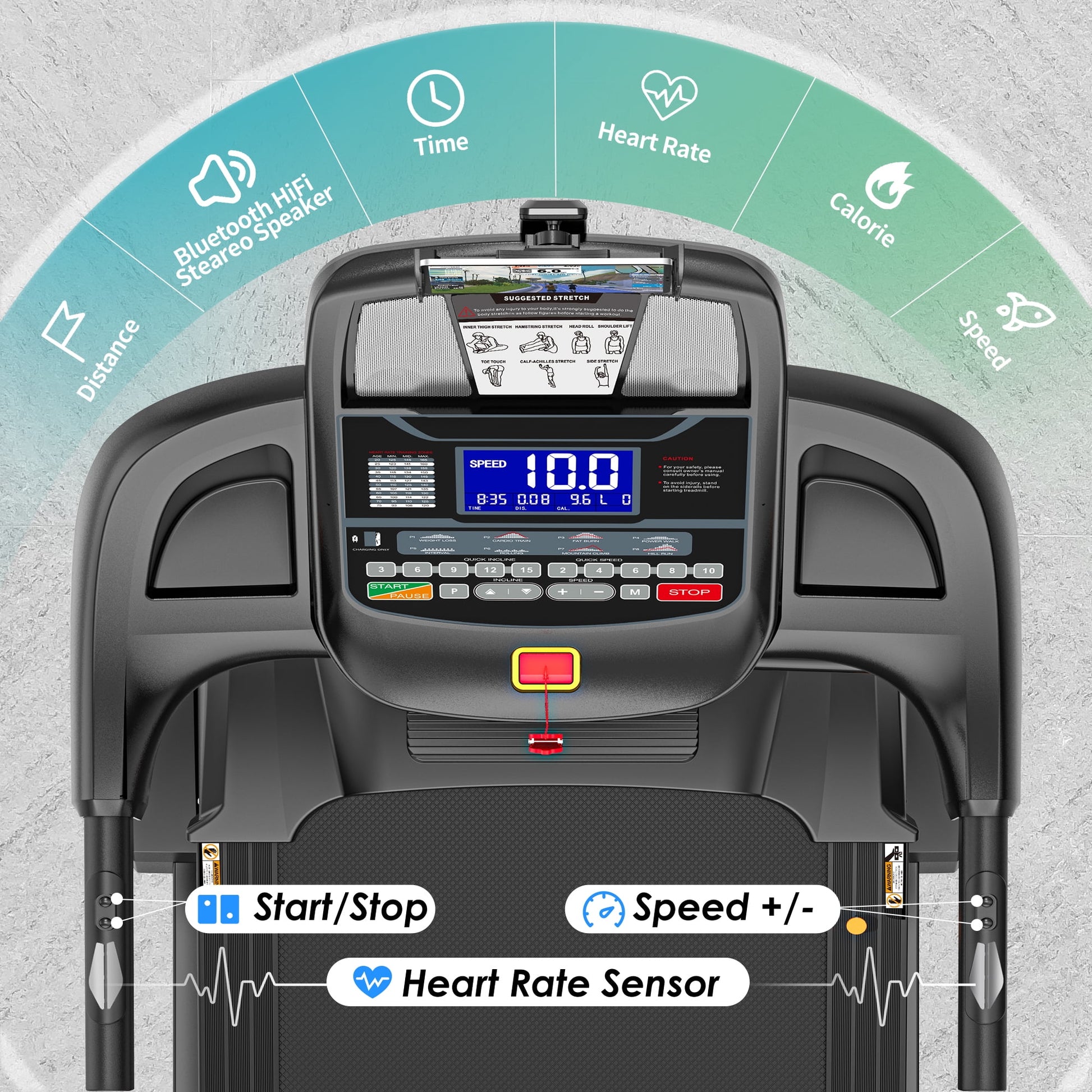 - 【HIGH-PERFORMANCE & LOW-NOISE MOTOR】Equipped with a powerful 4.5HP motor, this treadmill with incline supports speeds up to 10MPH while maintaining a quiet operation. Whether you're walking, jogging, or sprinting, it provides a smooth and consistent performance.